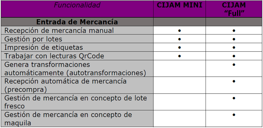 Las funcionalidades a destacar del módulo Entrada de Mercancía MINI son:
